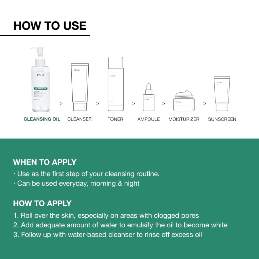 Modo de uso: Aplica el aceite limpiador sobre la piel seca y masajee suavemente durante 1-2 minutos. Luego, emulsiona con agua para eliminar eficazmente el sebo dando nuevamente masajes circulares. Por último, enjuaga con abundante agua tibia. No olvides, ahora limpiar con un limpiador a base de agua para remover los residuos de aceite, ya que no hacerlo, puede provocar brotes.