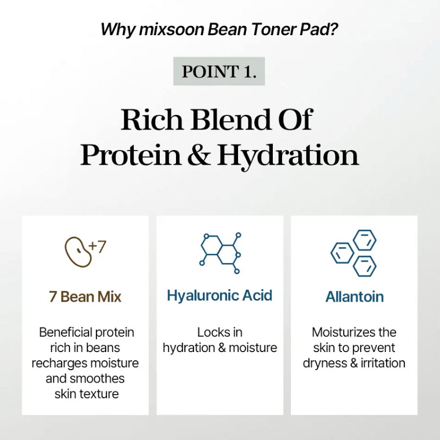 Estas almohadillas tónicas hidratantes contienen ingredientes de frijol ricos en proteínas para nutrir profundamente la piel. Contiene 7 tipos de extractos de frijol, como semillas de frijol, lentejas y soja silvestre, que contienen ricos aminoácidos con Lactobacillus para recargar nutrientes y proporcionar beneficios antienvejecimiento. Formulado con ácido hialurónico y alatoína para hidratar la piel y fortalecer la barrera de humedad de la piel. El material de la almohadilla está hecho de algodón natural que es suave y también contiene semillas de algodón para una exfoliación suave. Las almohadillas se pueden dividir fácilmente en 2 pedazos para aplicarlas en diferentes áreas de la piel.