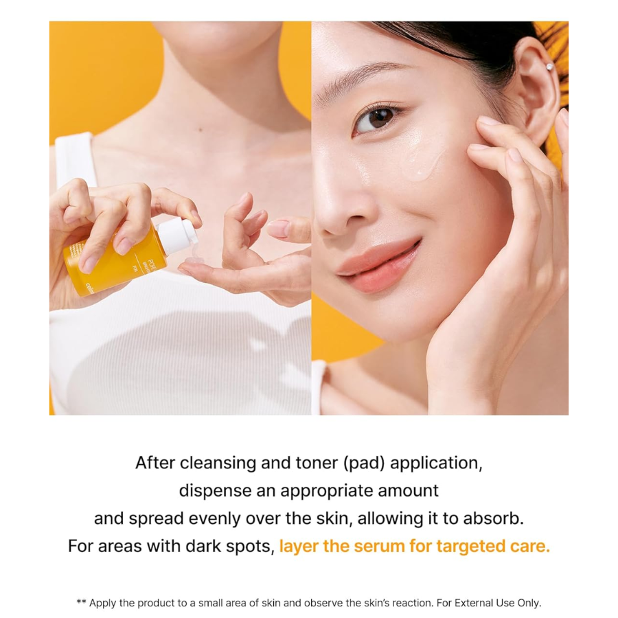 Modod de uso: Aplica una cantidad adecuada sobre la piel limpia y tonificada y espárcela por todo el rostro. Para áreas de manchas, puedes usar varias capas de serum.