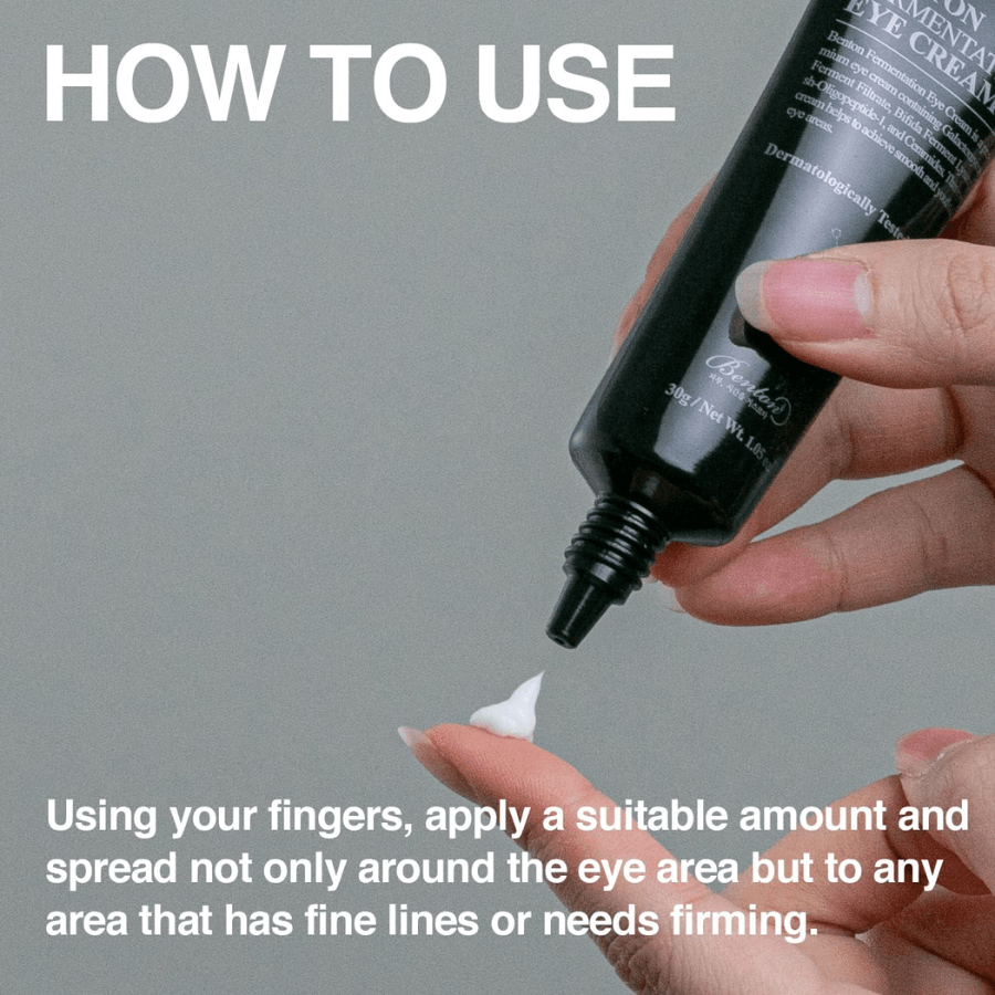 Esta crema para contorno de ojos altamente concentrada con ingredientes fermentados como el filtrado de fermento de galacytomyces y el lisado de fermento bífido trabajan junto con la ceramida, el EGF y el ácido hialurónico para poder disminuir las líneas finas y las arrugas alrededor de los ojos. Con el uso regular, la delicada piel se vuelve más firme, refinada y menos propensa a la sequedad. Ideal para personas que tienen: