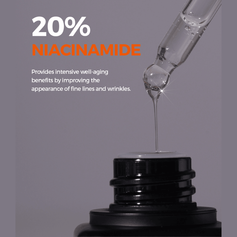 Este serum TODO-EN-UNO reduce la producción de sebo, la aperiencia de los poros y la textura de la piel, al mismo tiempo que unifica su tono. Con el 20% de niacinamida, provee a la piel de beneficios intensivos de well-aging, mejorando la apariencia de finas líneas de expresión y arrugas. Su textura es ligera y de rápida absorción, que provee de hidratación instantánea, dejándola suave y fresca.
