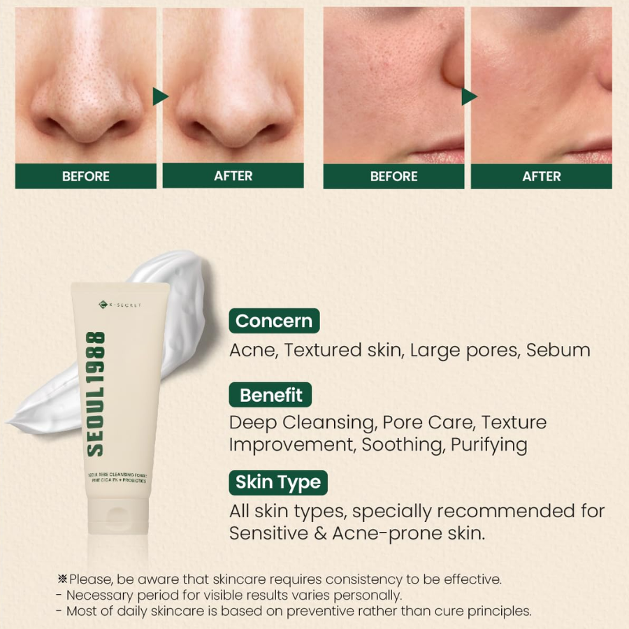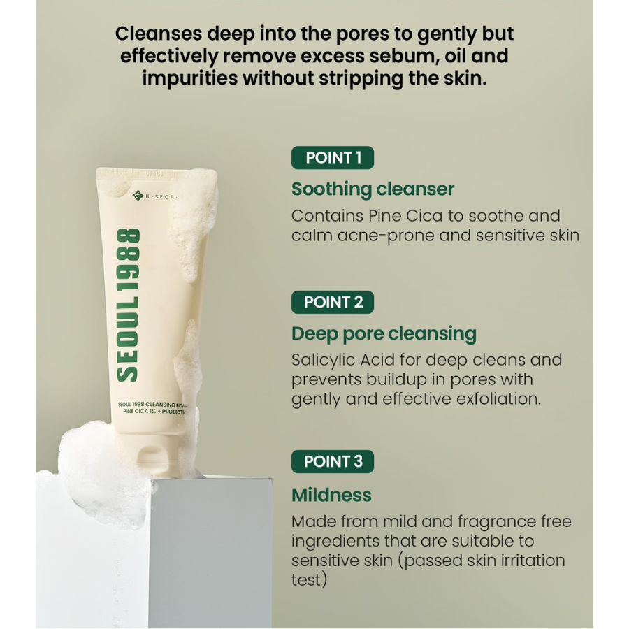 [K-SECRET] SEOUL 1988 Cleansing Foam : Pine Cica 1% + Probiotics