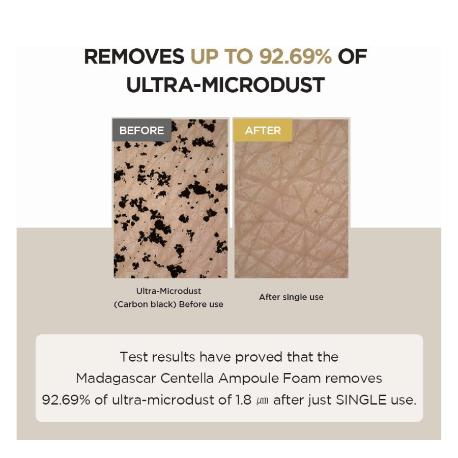 Esta espuma limpiadora contiene 33% de Centella Asiática que calma la piel y fortalece la barrera cutánea. Además, brinda una limpieza profunda, removiendo el sebo y las impurezas de la piel con polvo fino que es más pequeño que los poros.