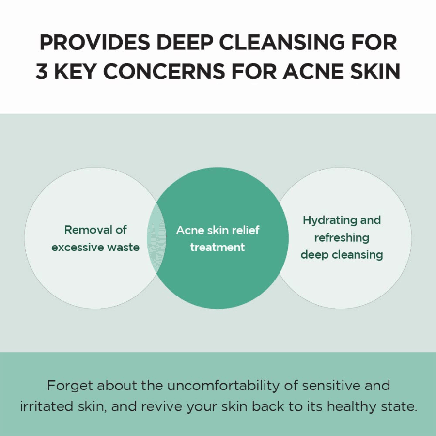 Este limpiador en espuma brinda un cuidado de limpieza profesional para problemas de la piel y un ingrediente funcional que proporciona alivio a las pieles con tendencia acnéica. El alto poder limpiador elimina el sebo excesivamente secretado, que es la principal causa de los problemas de la piel. También elimina los residuos que se han acumulado en la piel para que la piel se sienta fresca y limpia. Su ingrediente estrella (TEA TREE + CICA = TEA-TRICA) contiene complejo árbol-hoja, fórmula de árbol de té. Estos ingredientes cuidan el estado general de la piel. Contiene BHA (ácido salicílico), un ingrediente funcional importante para aliviar el acné. El ingrediente también controla el exceso de células muertas de la piel y elimina la grasa problemática para mantener los poros sanos.