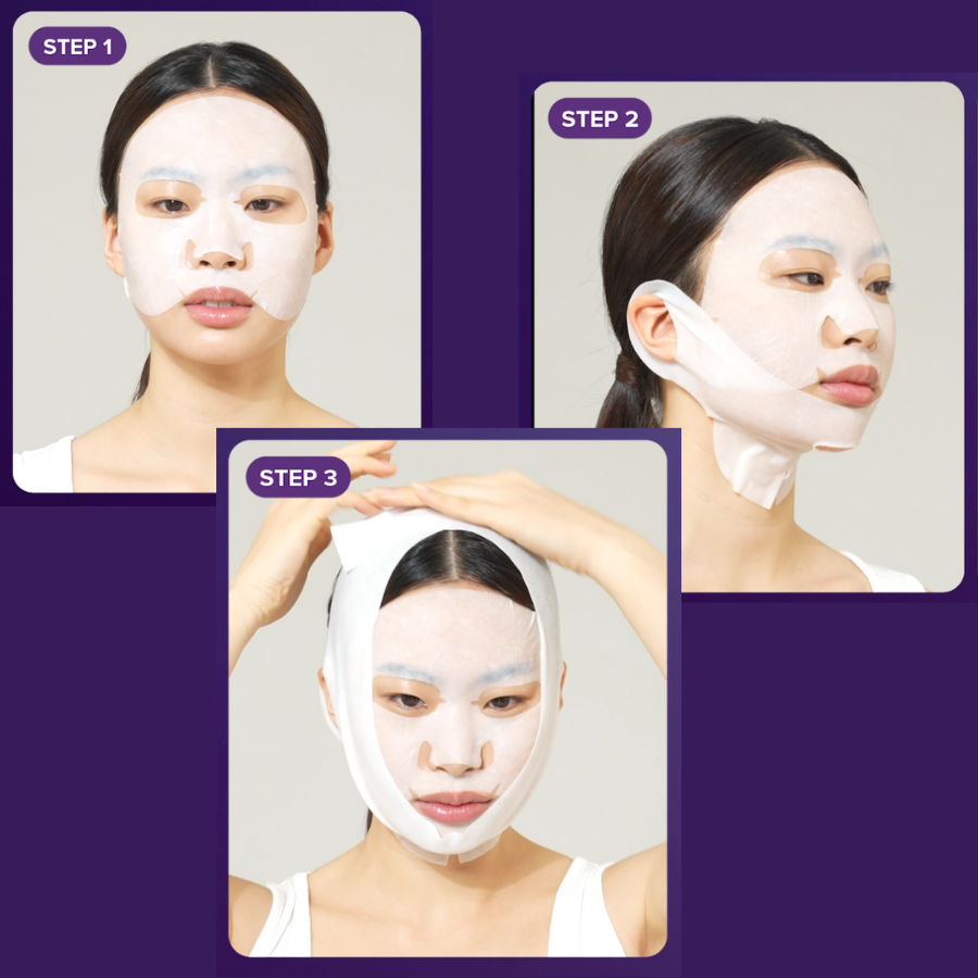 Es una mascarilla reafirmante de doble sección diseñada para esculpir, elevar y redefinir el contorno facial. La mascarilla superior contiene cápsulas de NAD+ BIO para revitalizar la piel, mientras que la mascarilla inferior contiene hilos de PLA disolubles que realzan la línea de la mandíbula y favorecen una tez radiante y rellena. Para un efecto lifting adicional, la banda de lifting ajustable ayuda a tensar y esculpir el rostro (el paquete de 4 piezas incluye la banda lifting, mientras que las piezas que se venden individualmente no la incluyen. Contiene una potente fórmula antienvejecimiento: