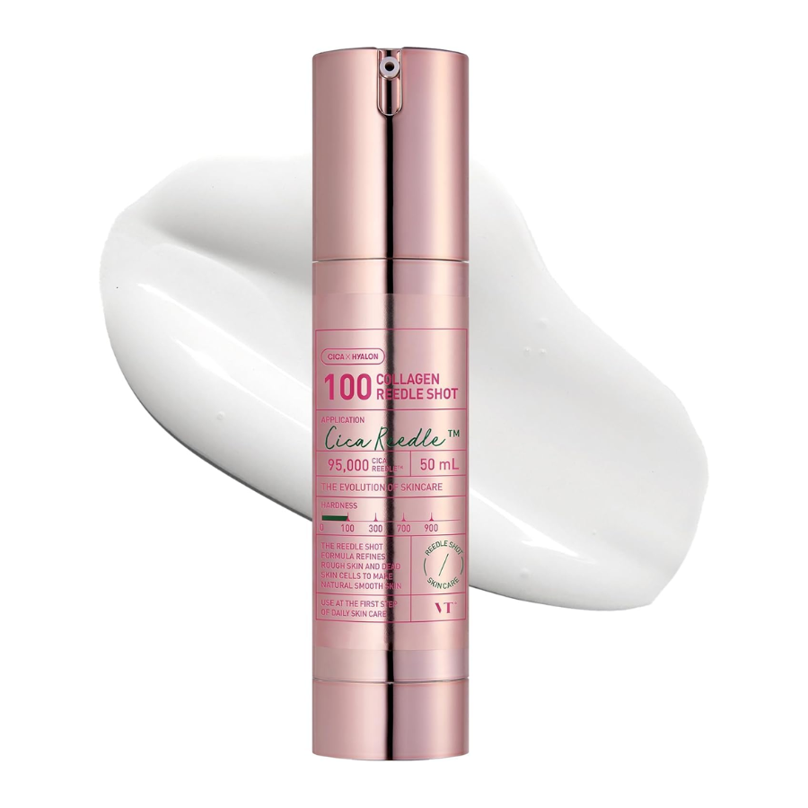 El VT Collagen Reedle Shot aporta colágeno en profundidad en el estrato córneo con extracto de colágeno de 500 Da de bajo peso molecular altamente absorbible. El ingrediente patentado de VT «CICA HYALON» con «CICA REEDLE», ayuda a refinar la textura de la piel, y el colágeno, que proporciona hidratación y firmeza, dan a la piel una elasticidad flexible. También contiene Extracto de proteína de leche. que hidrata el estrato córneo, equilibra la grasa y la humedad de la piel y mejora la barrera cutánea. Su Vitamina E ayuda al colágeno a penetrar profundamente en el estrato córneo. El Agua de colágeno proporciona hidratación a la piel flácida, dejándola hidratada y flexible. Su textura es refrescante, con una rica hidratación. No es pegajosa y se funde suavemente con la piel.